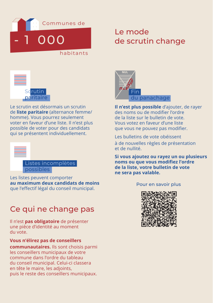 Actualité, Informations mairie Tout savoir sur le nouveau mode de scrutin pour les communes de – 1000 habitants Posted on 7 février 2026